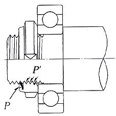 The FINE U-NUT is a one piece item where the locking function is performed by a spring peened into the top of the nut. In use the spring bears on the flank of the shaft thread with force. P generating reaction force P'in the screw threads with a resulting high friction torque (prevailing torque). The nut therefore remains locked in position.