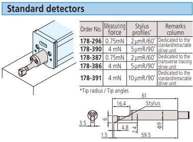 178-296 Detectors abailable for Surftest SJ-210, SJ-310